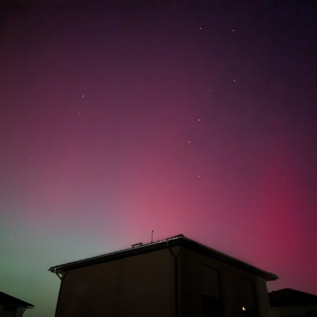 Me too, me too!! I had no idea the #aurora was out tonight until our village chat group lit up! This is the very first time I've ever seen the Northern Lights – what a dream come true! 🤩🥹 At first, there were just faint green smudges flickering in and out of the night sky, followed by a soft red tint. I ended up standing in the garden for half an hour in my dressing gown, trying to capture it all on camera. Unsurprisingly, my phone did a better job than the camera at bringing out the colours, because I have no idea what I'm doing. 😅 The first image is from my phone, the second is from the camera. In the first, I've silhouetted the houses for privacy. Can you spot the Plough/Big Dipper just above the middle roof? 😊 The second photo is SOOC. #Polarlicht #Polarlichter #Nordlicht #Nordlichter #NorthernLights #auroraBorealis #GroßerWagen #BigDipper #Plough #nightSky #nightShot #Biederitz