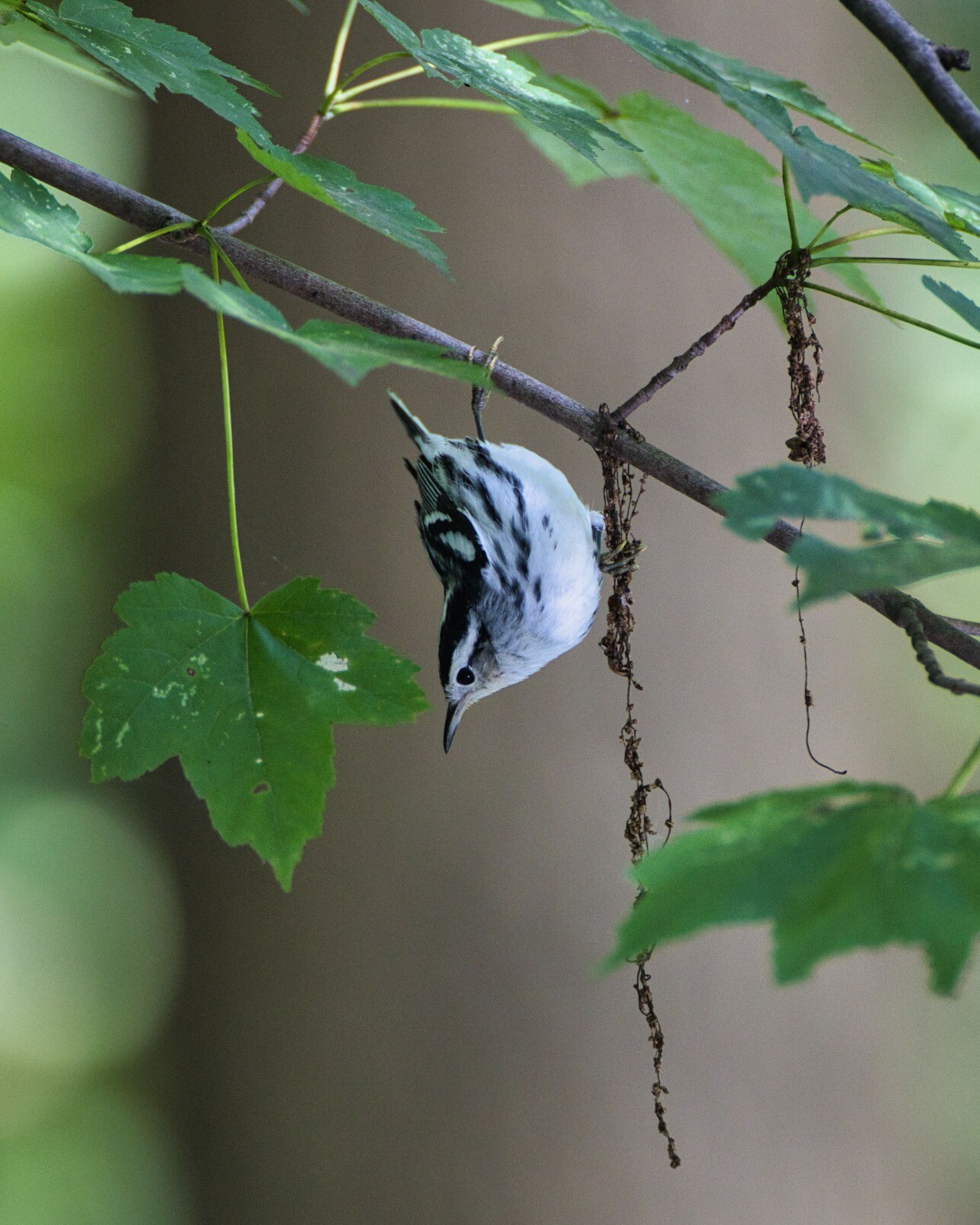 A black-and-white warbler (Mniotilta varia) in Central Park. These warblers act very much like nuthatches, making them pretty easy to spot as they work their ways along branches and up the trunks of trees.#blackandwhitewarbler #warblers #fallmigration #nature #wildlife #birds #birding #birdwatching #MniotiltaVaria #centralpark #nycparks #canonphotography #luminarneo