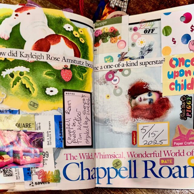 Today’s junk journal spread. I used old planner stickers, Magazine and coupon book clippings, shipping tags, and a picture from a little golden book. To me junk journal long is all about slamming trash into art. It’s about exercising your creativity and sustainability. Unlike this spread, today was a very rainy gloomy and exhausting day. But I did get to thrift shop and score some craft supplies, add to my collection of dolls/toys and restock my apothecary/alter. #junkjournaling #scrapbooking #junkjournal #junkjournalsupplies #collagespread #ecofriendlyart #sustainability #reusereducerecycle #earthfriendlyart #junkjournalspread #chappellroan #thrifting #thriftfings