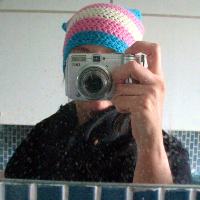 I crocheted a hat in trans colours to express solidarity! I finished it just in time for IDAHOT and got to wear it at the Anarchist Bookfair in Ghent last weekend and at a Lavender Witch show in Brussels today (not during the actual show unfortunately because I want to be able to headbang 😊). More info at https://echopublishing.wordpress.com/2025/05/24/pride-witches-black-lent-queerness-idahot/ #transsolidarity #crochet #transhat #transcrafts #queercrafts #trans #queer #transflag
