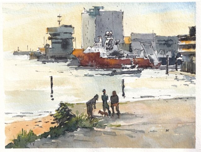 The harbor of Scheveningen, Holland. The end of April, last hour of sun. Sultry. A lovely evening. #aquarel #watercolor #watercolour #art #thehague #denhaag #netherlands #scheveningen #harbor