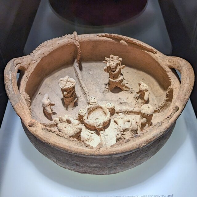 I love visiting museums. Here is a ceremonial vessel, from the Tairona culture (900 to 1600 CE, northeastern Colombia), depicting a sacred dance. The figures with their elaborate costumes tell us that some things are truly timeless: music, dance, and our need to connect with something greater than ourselves. #Tairona #culture #TaironaCulture #SierraNevadaDeSantaMarta #SantaMarta #Magdalena #Tayrona #TayronaPark #Colombia #SouthAmerica #archaeology #precolombian #ancient #history #artifact #museum #anthropology #ancientArt #ceramic #indigenous #native #ceremony #ritual #sacred #dance #ceremonial #history #Columbia #photography #photo #fotografia #foto #nature #naturaleza #naturePhotography #pixelfed #travel #trip #art #arte
