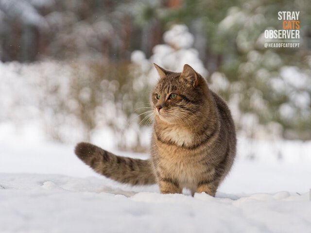 A Cat Looking Around | Осматривающийся кот https://straycatsobserver.ru/cats/2023-DSC01669 #tabbycat #полосатыйкот #wintercat #зимнийкот #fedicats #catsofpixelfed #snowcat #cat #кот #pixelfedcats #ねこ #猫