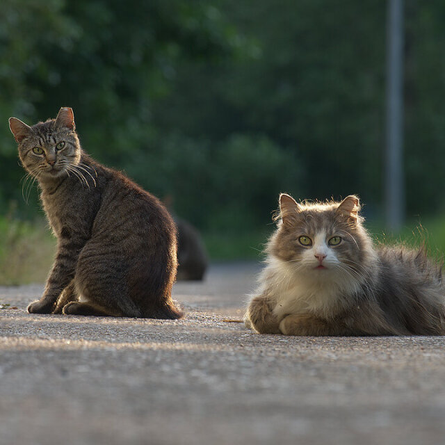 Он глухой, поэтому у него часто напряженный вид. А, в целом, коты довольно только когда они голодные, а я корм принес :) На картинке они уже поели :)