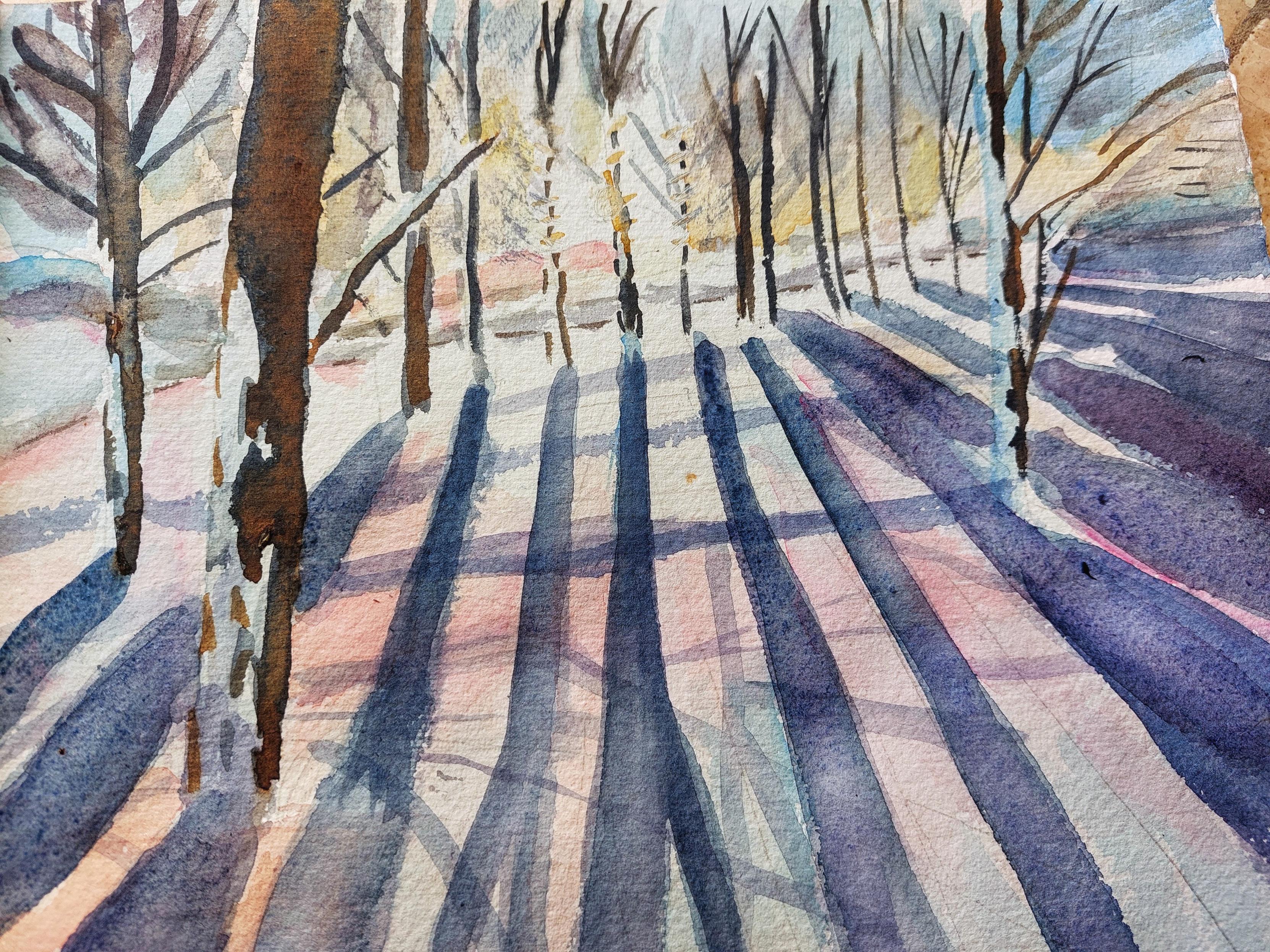 #watercolor #watercolour #watercolours #art #artists #painting #nature #landscapes #landscape #trees #winter #shadows #afternoonlight #Wood #aquarelle #aquarell #aquarel #mastoart #mastoartist #inkyparkers #CreativeToots