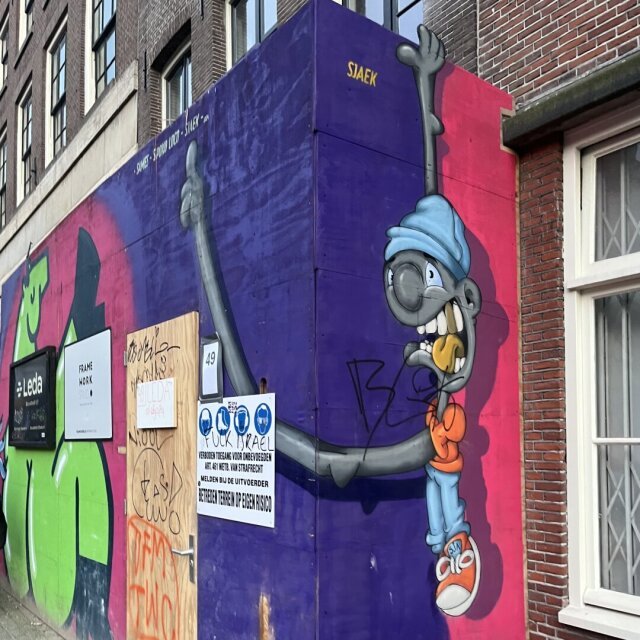 1/3 Graffiti making Amsterdam📍an iconic place. Artist: Sjaek. Notice the fingers extending the wooded structure! #streetart #graffiti #art #city #amsterdam