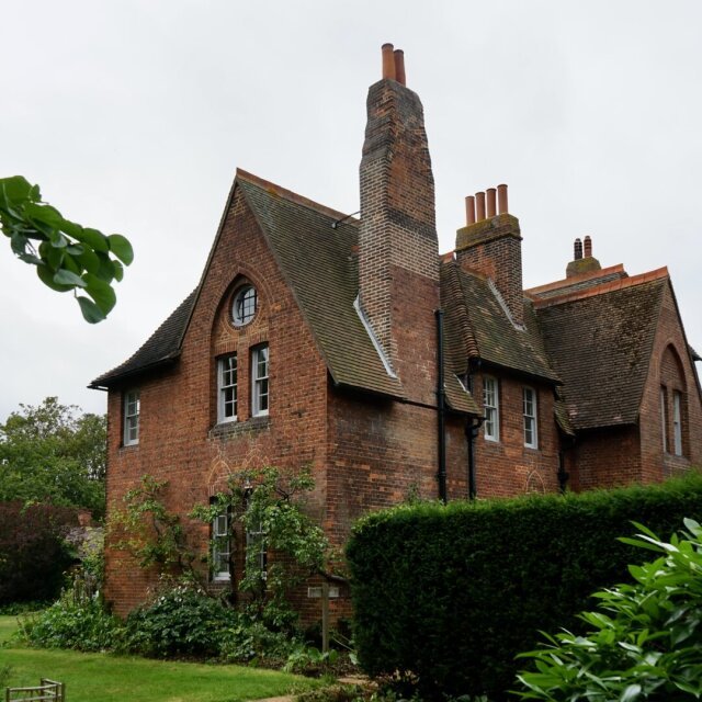 Assez déçue par le rendu des photos d’extérieur, à peu près toutes grises, pâlichonnes et mal cadrées, je n’ai jamais publié le billet que je prévoyais sur la Red House, la maison occupée par William Morris à Bexleyheath pendant quelques années au milieu du XIXe siècle. . C’est donc une très belle demeure en brique rouge, d’où son nom, imaginée par William Morris et Philip Webb dans un coin à l’époque très rural. On la visite sur rendez-vous et c’est très intéressant. . Morris s’y installe à l’époque avec son épouse de fraîche date, Jane, et pendant quelques années, ce quasi-manoir va voir passer plein d’artistes connus qui viendront donner un coup de main pour peindre une fresque décorative ou un plafond ici ou là (ah, il y a des gens qui savent choisir leurs amis, hein). De cette foisonnante époque, il ne restait pas grand-chose quand la maison a été classée au début des années 2000, après près d’un siècle et demi d’occupants variés. On a retrouvé des (morceaux de) fresques sous la peinture de certains murs (photo 3), et on espère encore en retrouver d’autres ; idem pour les vitraux des fenêtres du couloir et les carreaux, d’origine (photos 6-7). . Le très joli plafond tout en haut au dessus de l’escalier a été peint par Morris & co. et gardé en l’état car peu accessible (photo 4). Détail que j’aime bien : les deux trous circulaires dans la rambarde de l’escalier, percés pour que les enfants en très bas âge du couple Morris puissent voir ce qui se passait (photo 5, si c’est pas meugnon). . La maison est entourée d’un magnifique jardin qui doit être encore plus chouette sous un rayon de soleil. Une citation de l’ancien maître des lieux indique : “Large or small the garden should be orderly and rich. It should be well fenced from the outside world. It should by no means imitate either the wilfulness or the wildness of nature, but should look like a thing never to be seen except near the house. It should, in fact, look like part of the house.” Juillet 2023.