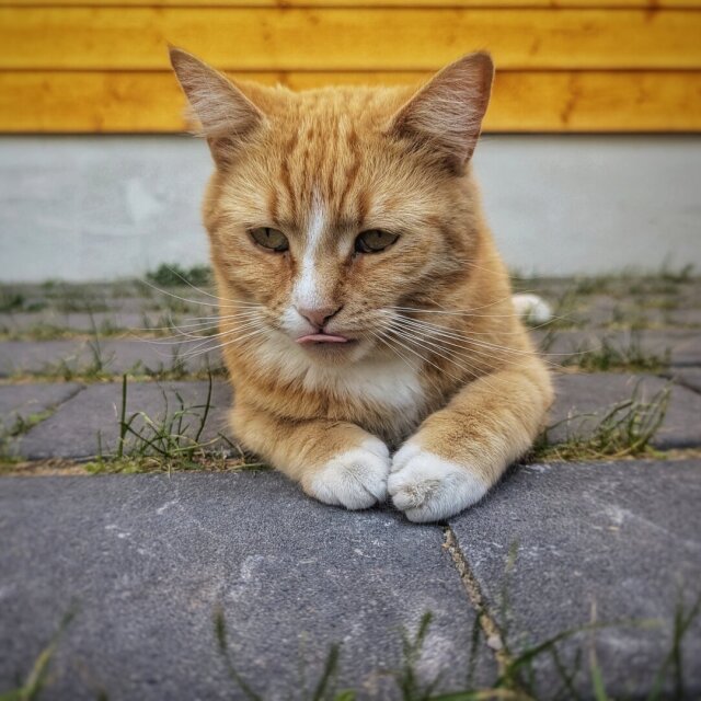 Had enough of Lucy's photos yet? 🙈 Here's a #TongueOutTuesday & #WhiskersWednesday crossover #gingerCat #orangeCat #CatsOfPixelfed #CatsOfMastodon #CatsOfFediverse #PixelCats #Katze #Katzen #KatzenContent #cat #kitty #animal #pet #greenEyes #animalPhotography #animalPortrait #blep #Caturday