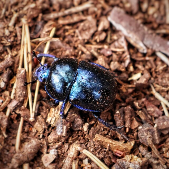 @b_age@troet.cafe Oh. So einen gibt's auch noch?? 😳 Der sieht ja ... genauso aus! 😨 Ich hatte so einen leuchtend blauen Kollegen einen Monat zuvor in der Fischbeker Heide fotografiert, darum bin ich ganz naiv davon ausgegangen, dass der hier (bei Halberstadt entdeckt) auch ein Frühlingsmistkäfer ist 🙈🙈🙈