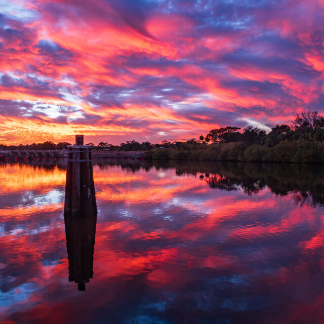 Fire in the Sky - Sunset over St Lucie Lock and Dam Southwest Locks Road, Martin County, Florida, United States Taken on 2026-01-02 17:48:57 with Fuji 16-55mm F2.8 on Fuji X-H2 with exposure 1/13s @ f/8 @ 16mm @ 400 ISO Photo location: https://www.openstreetmap.org/#map=17/27.1135441183333/-80.2824408716667 St Lucie Locks and Dam are the first stop on the St Lucie River on the way to Lake Okeechobee. Critiques welcome. Thanks for taking the time to look at my photo. #Photography #AmateurPhotography #MyPhoto #Clouds #LandscapePhotography #Sunset #Weather #Winter #FujiFilm #FujiXSeries #FujiPhotography #PhotoCritique