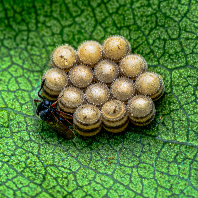 #FotoVorschlag “Voll Cool // Too #Cool “ This is (I believe) a Samurai Wasp. The barrels are stink bug eggs. The is technically a parasite because it lays its eggs inside the egg containers of the stink bugs and the larvae will consume the stink bug larvae. The samurai wasp will stay with her babies until they hatch to ensure that the job is done. What a good mother! 🥰 #photography #fotografie #macro #macrophotography #bugs #insects #wasps #parasite #insects #insekten #fujifilm #lightroom