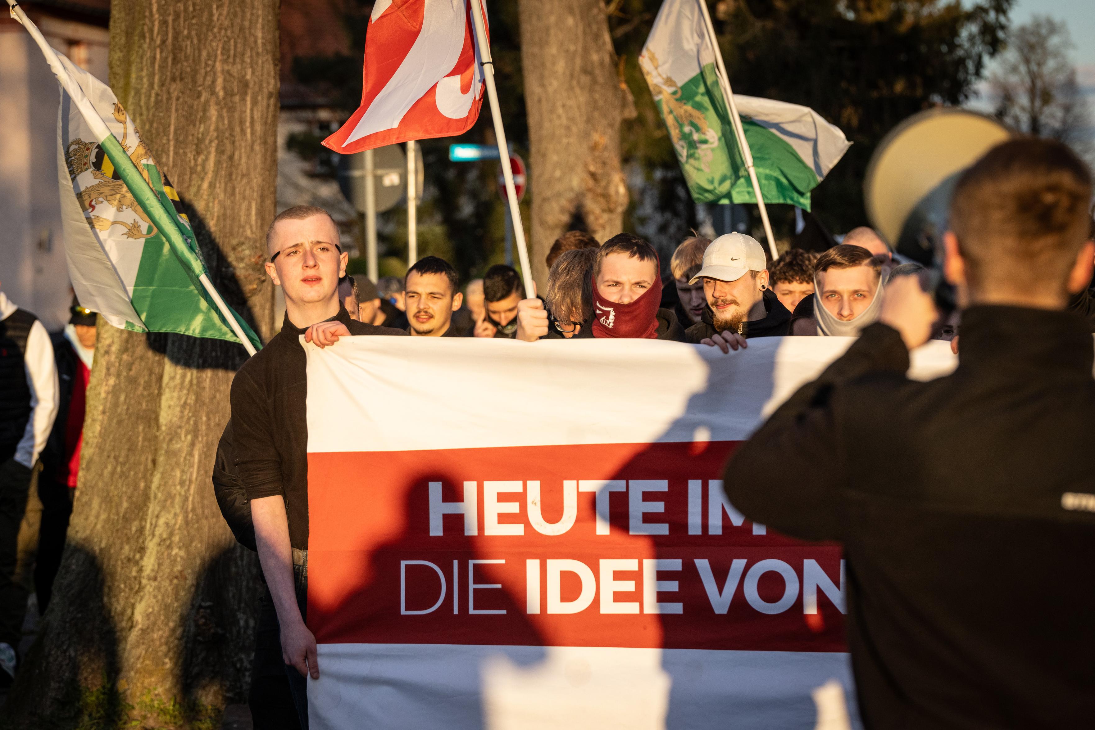 Gleichzeitig ließ man einen Block der Jungen Nationalisten, der Jugendorganisation der Partei Die Heimat (ex-NPD) vorne weg marschieren. An der Seite trug eine Gruppe älterer Neonazis ein langes Banner mit der Aufschrift: "Rassenkrieg gegen Deutsche beenden". Weitere Bilder unter: https://johannesgrunert.piwigo.com/index?/category/77-aufmarsch_der_freien_sachsen_in_heidenau_am_08042025 #heidenau #hdn0804