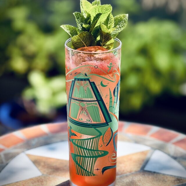 SANDÍA HIGHBALL ½ oz lime juice ¼ oz ginger syrup 1 oz watermelon juice 1 oz Aperol 1 oz Tequila blanco float 1-2 oz seltzer Garnish: mint sprig Method: Combine all ingredients except seltzer into a shaker, add ice, and shake. Strain over a clear ice spear, add seltzer, and garnish. Seen on IG anatomyofadrink channel. He took the Sandia recipe, created in 2016 by David Valdez at Simbal (Little Tokyo, Los Angeles; now closed), and turned it into a highball by adding soda water. I batched this up and took it to a garden party today — it was gone quickly! 🔗 https://potentpotables.app/drinks/sandia-highball/ #alcohol #cocktail #cocktails #lime #juice #ginger #syrup #watermelon #aperol #tequila #seltzer #ClearIce #mint #garnish #ArtOfBrex #HomeBar #mixology #drinkstodon #fedithirst