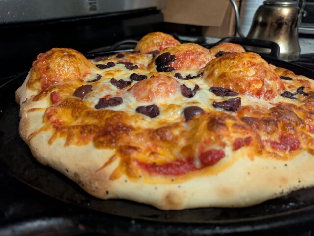 @feld@friedcheese.us There is an Italian bakery in town that sells bags of fresh pizza dough. There is also an Italian grocery store down the street from it that sells a delicious fresh pizza sauce and cheese. When I find myself on Brady Street, I like to stock up. The dough is from there.